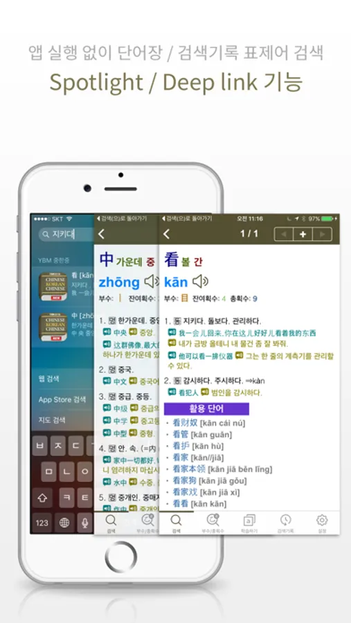 ● 유니버셜 버전(iPhone/iPad 겸용) 지원! YBM 올인올 중한중 사전이 iPhone과 iPad를 동시에 지원합니다. 앞으로도 많은 성원 부탁드립니다. ●