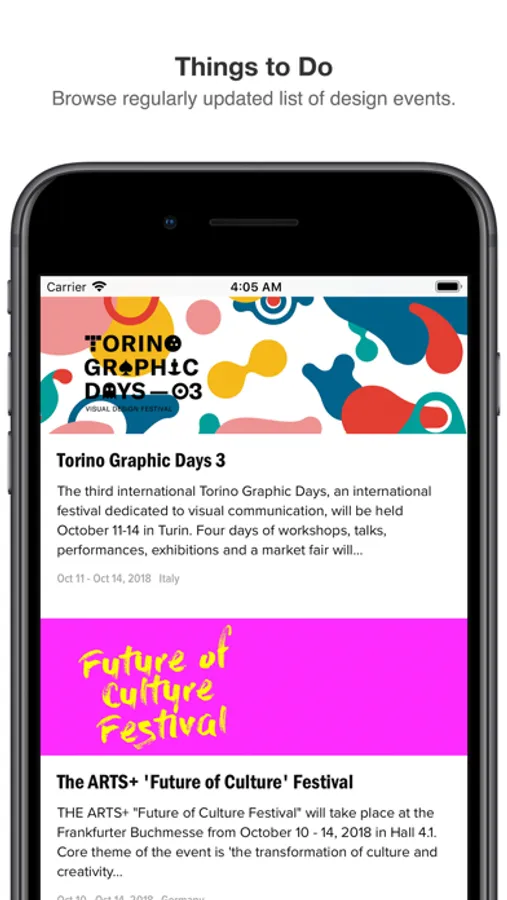 Browse regularly updated list of design events, exhibitions, conferences, lectures, workshops.