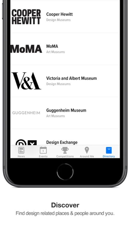 Design related places & people around you; designers, studios, galleries, museums and more!