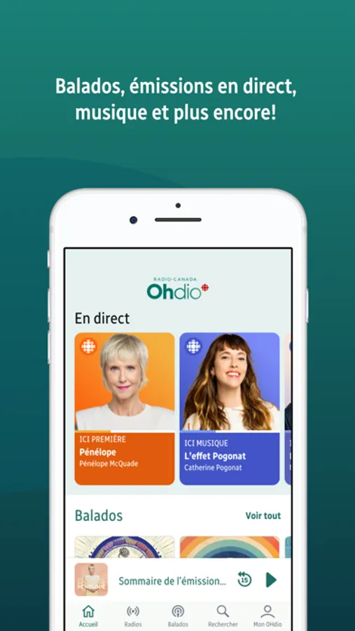 Profitez de toute la richesse du contenu audio de Radio-Canada. À écouter gratuitement dans une seule appli!