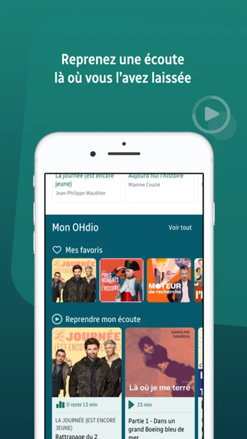 Reprise d’écoute : poursuivez l’écoute d’un contenu là où vous l’avez arrêtée.