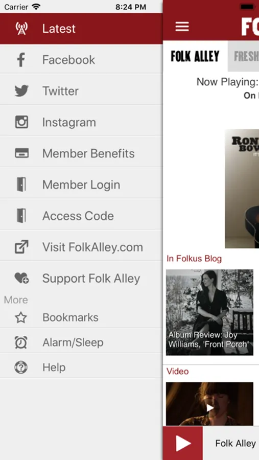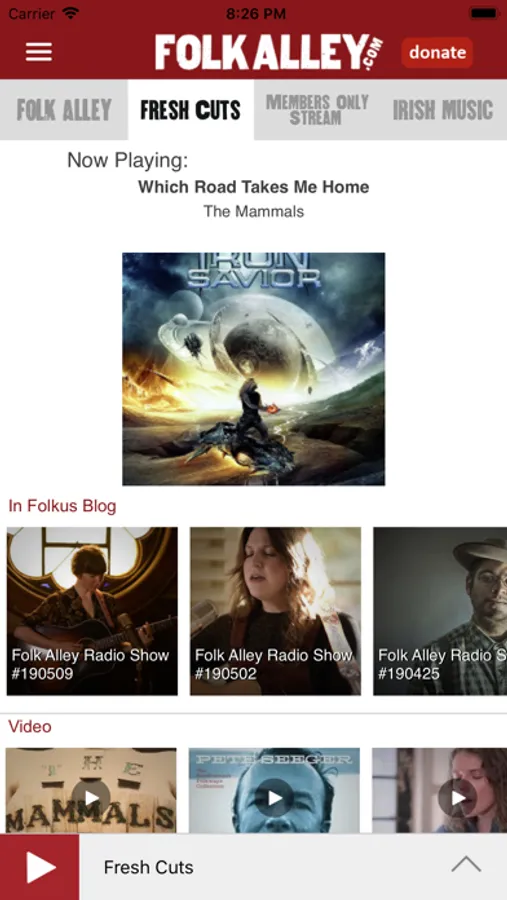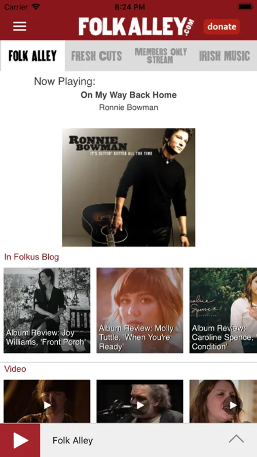 • Listen to streaming music from FolkAlley.com even while traveling! Start the app and your favorite stream starts playing.