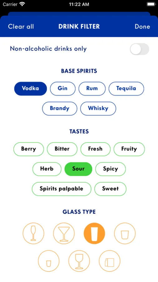 • Search filtered to see recipes with only your favorite ingredients or switch to see only non-alcoholic drinks.