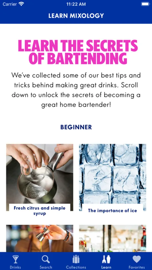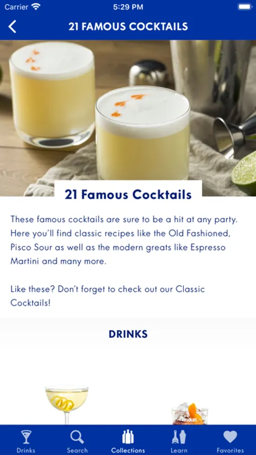 • Drink collections based on season, occasion, classic cocktails, easy to mix drinks and more.