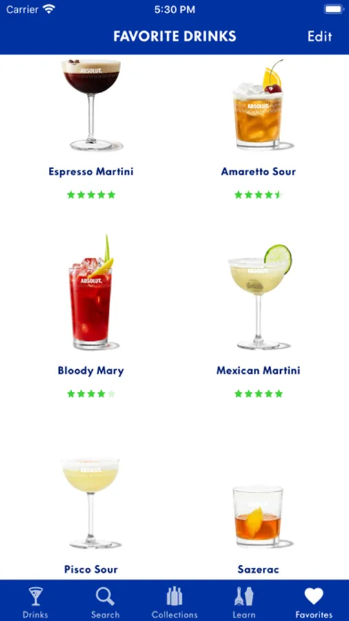 • Bookmark your favorite drinks in your own drink collection, whether you made the drink yourself or tried it in a bar.