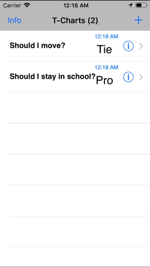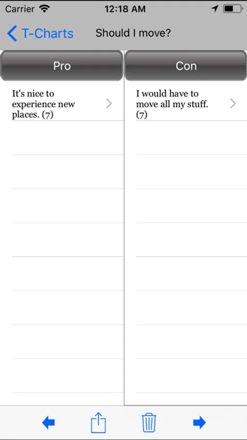 A simple T-Charts program. Have a tough decision to make? Measure the pros and cons of a situation. Share the answer with friends.