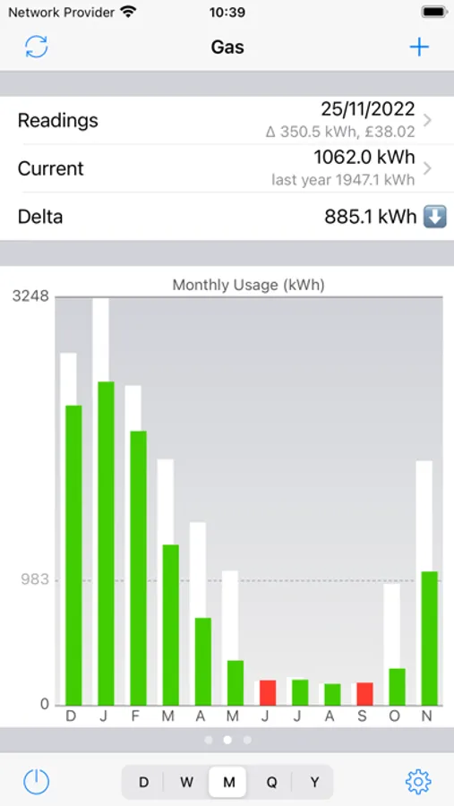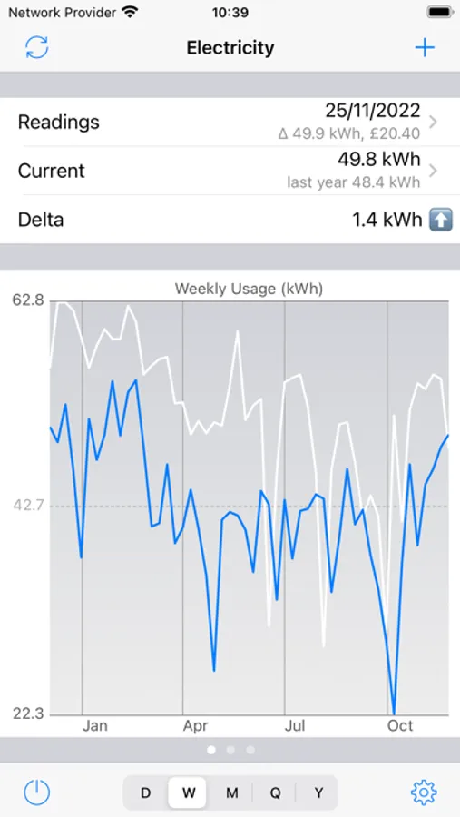 - Displays usage and costs for the latest readings period, and compares this with your average or previous year