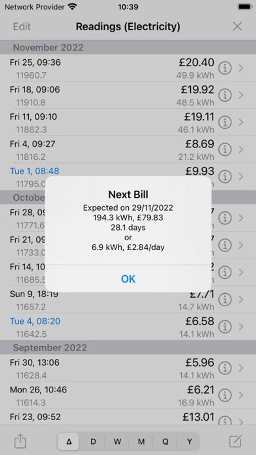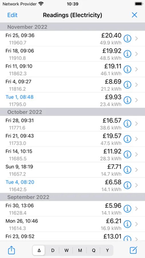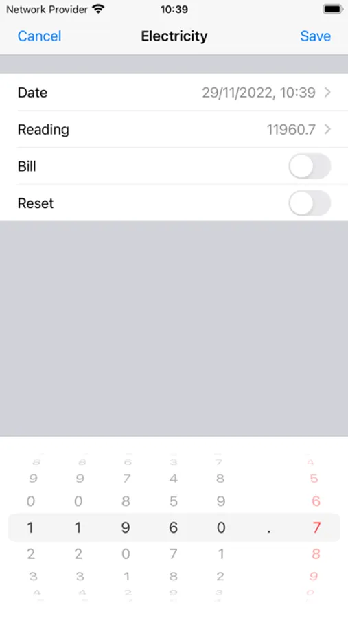 - Uses the currency from your device's region setting, but you can override this per meter (e.g. for holiday homes)