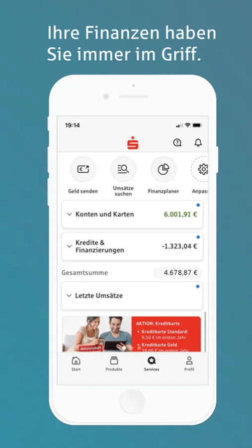 The app Sparkasse will be there for you in all situations. No matter whether you set up a standing order while traveling on train, settle your bill at the breakfast table with photo transfer or check the account balance and credit card transactions. Annoying filling out a transfer form on the computer is no longer necessary. Instead, you can easily do everything with the iPhone/iPad.