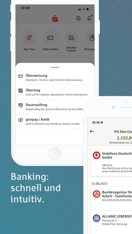 If you use a high-quality, up-to-date banking app in combination with an up-to-date operating system and a secure internet connection, you don't have to worry about mobile banking. The app Sparkasse communicates via tested interfaces and ensures secure data transfer in accordance with the German requirements for online banking. All data is stored encrypted. Access is protected by a password and optionally by Touch ID/Face ID. The autolock function locks the app automatically. All finances are secured to the maximum in the event of loss. TÜV confirms the safety standards and re-tests them annually.