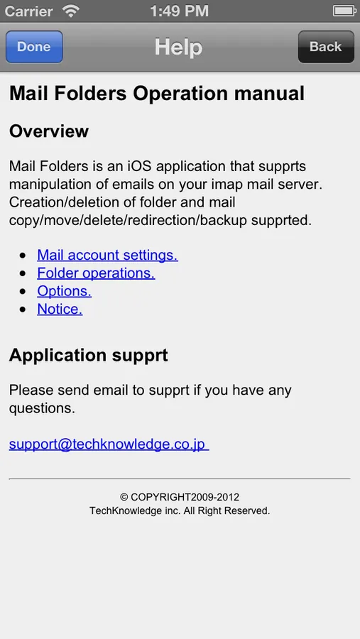 Supports Imap mail servers such as Gmail, MobileMe,AOL and Softbank.