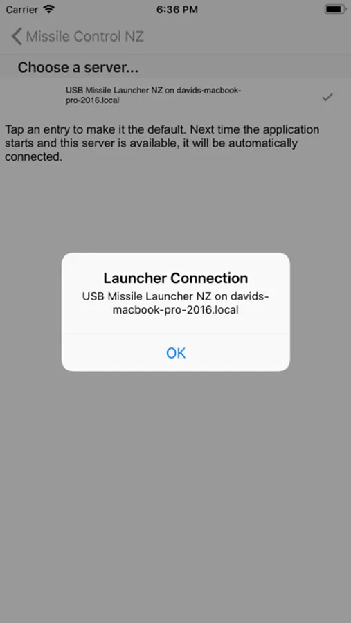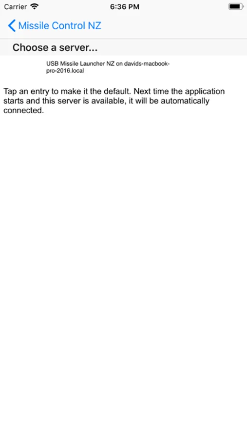 Now run the iPhone application, select the instance of USB Missile Launcher NZ that you wish to connect to via the settings screen.