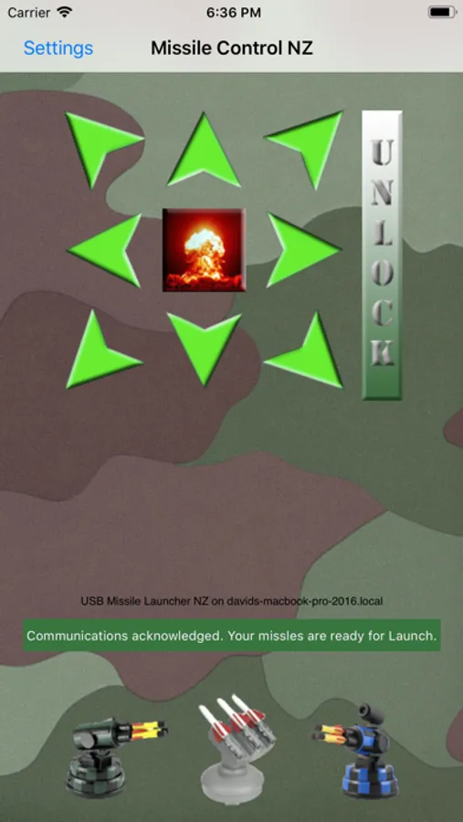 You should now be able to remotely control your missile launcher. Any feedback from the USB Missile Launcher NZ software is displayed the iPhone/iPod touch screen.