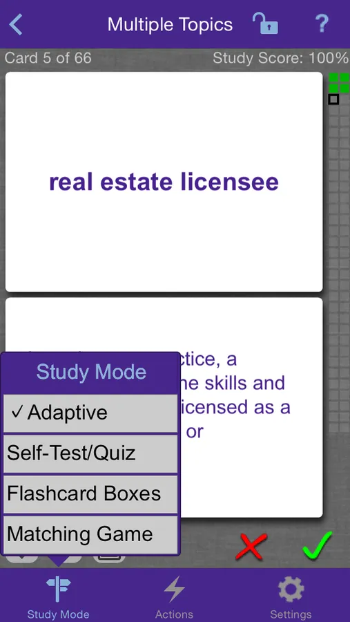 The Real Estate Terms App is designed as a mobile reference and learning tool. The application works in two modes; Reference and Flashcards.