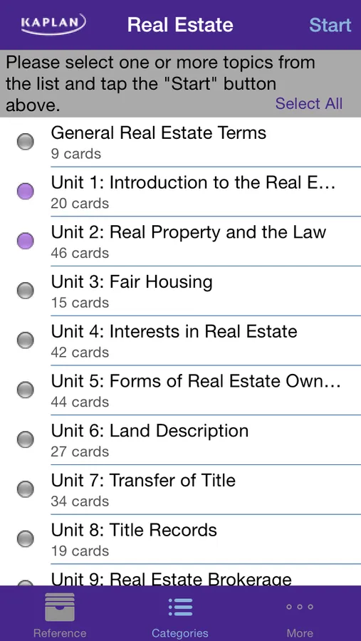 Kaplan Real Estate Terms includes an alphabetical listing of all terms for ready reference. Study sets are grouped into twenty-three categories: