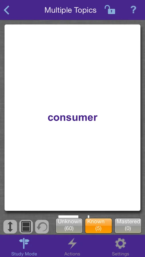 - Flashcard Boxes mode lets you file cards in “Unknown”, “Known” or Mastered” boxes so you can target weak areas