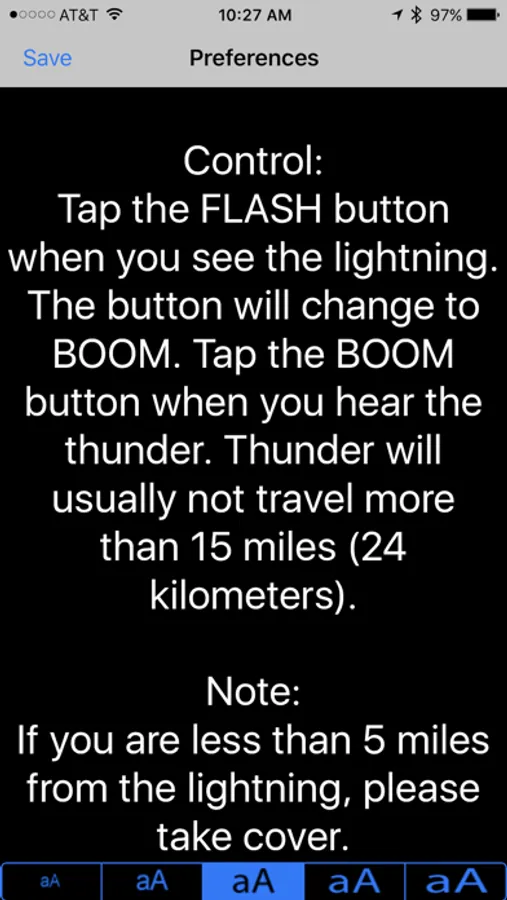 Tap the FLASH button when you see the lightning. The button will change to BOOM. Tap the BOOM button when you hear the thunder. Thunder will usually not travel more than 15 miles (24 kilometers).