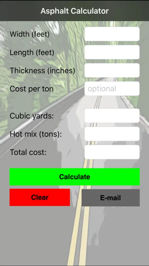 This iPhone/iPod Touch app will calculate the amount of cubic yards needed for a given job. It will also calculate hot mix tonnage. Simply input the length and width in feet and the thickness in inches and tap on the calculate button for your results. Also, included an optional cost calculation, simply input the cost per cubic yard of asphalt and the total cost will be displayed with the results.