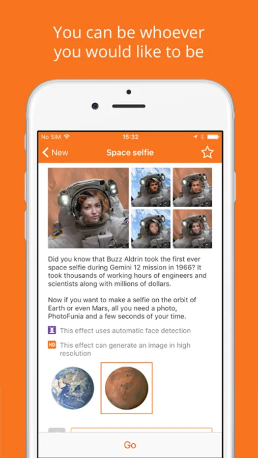 Would you like to see your picture on the cover of a magazine or on advertising billboards of Times Square? How amazing will it be to see your portrait on the walls of Louvre or Hermitage museums? Want to try out an astronaut or a Santa suit? Or you prefer something more exotic, just like a dancer at the Rio's carnival? Excited to find out how good you look with a witch's hat or a queen's crown on? Perhaps you're just looking for a nice frame for your photos on a special occasion?