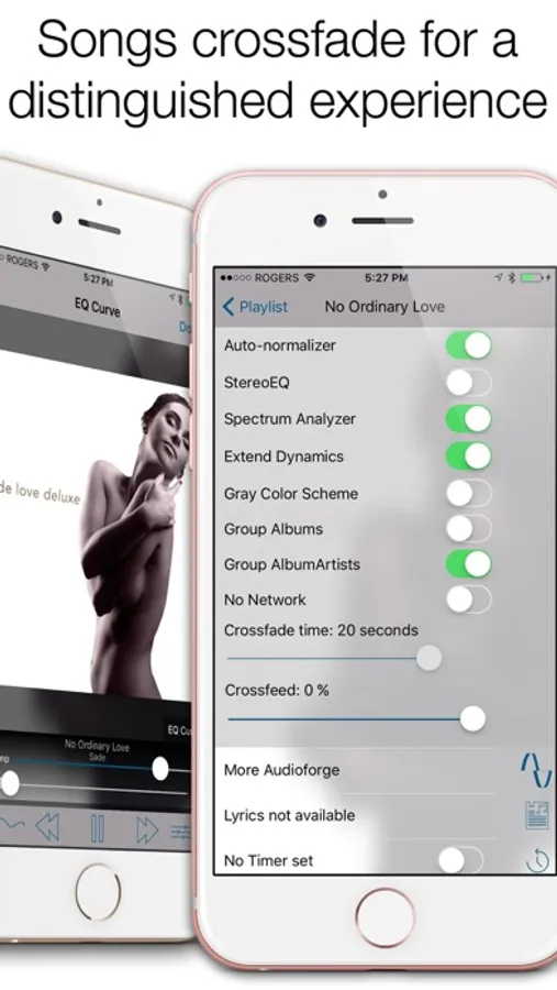 + Crossfade between songs. Make sure to stop the music before changing the crossfade time slider.