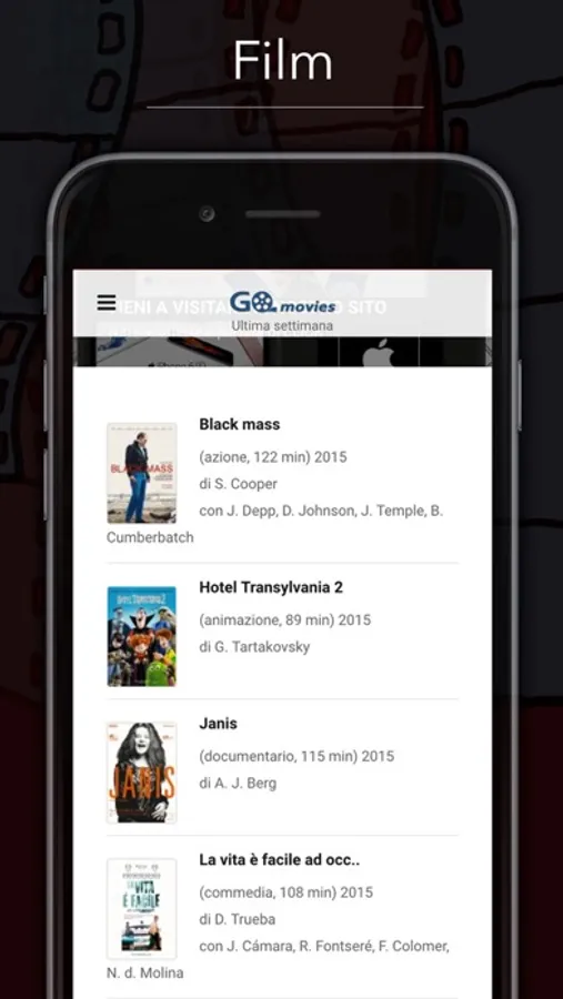 * film e orari sempre aggiornati (goMovies richiede una connessione internet per funzionare: WiFi, 3G, Edge o GPRS);