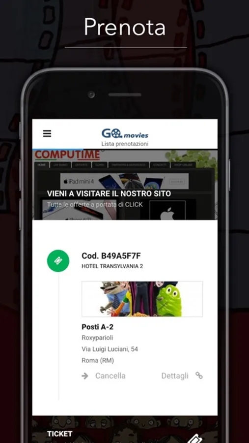 Puoi prenotare il biglietto dei migliori cinema italiani direttamente dal tuo iPhone®: per consultare la lista dei cinema visita http://app.computime.it