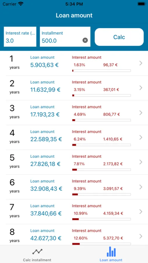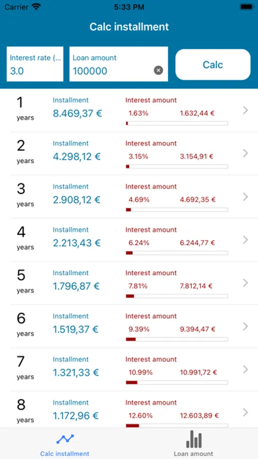 Choose the amount of the monthly instalment and calculate the capital of the loan that you can get according to its length, or choose the capital and calculate the monthly instalment according to the length of the loan.