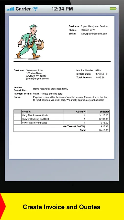 Invoice on the go or online. Customers can pay directly from your customized invoice with our Pay Now technology