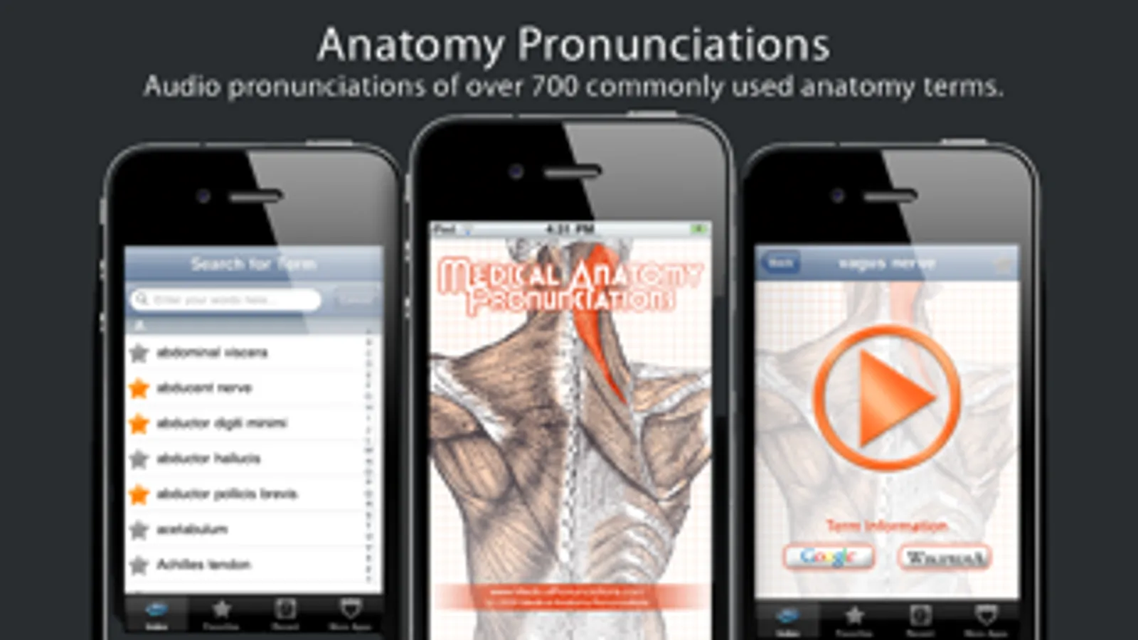 **Accurate pronunciations of over a hundred important anatomy terms at your fingertips!!**
