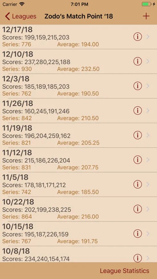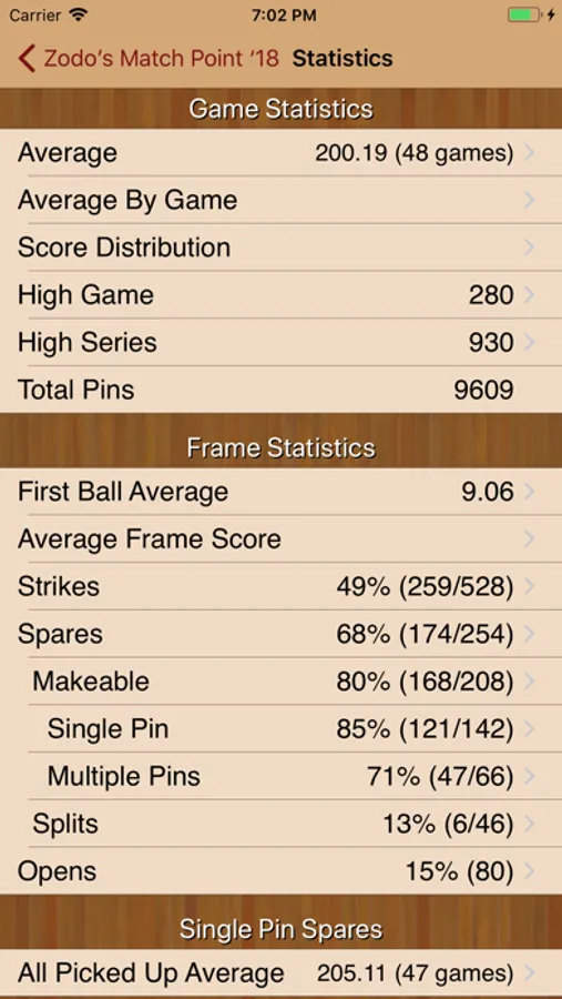 PinPal keeps track of both leagues, tournaments, and open bowling, allowing bowlers to view their average and other statistics in many different ways.
