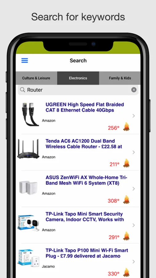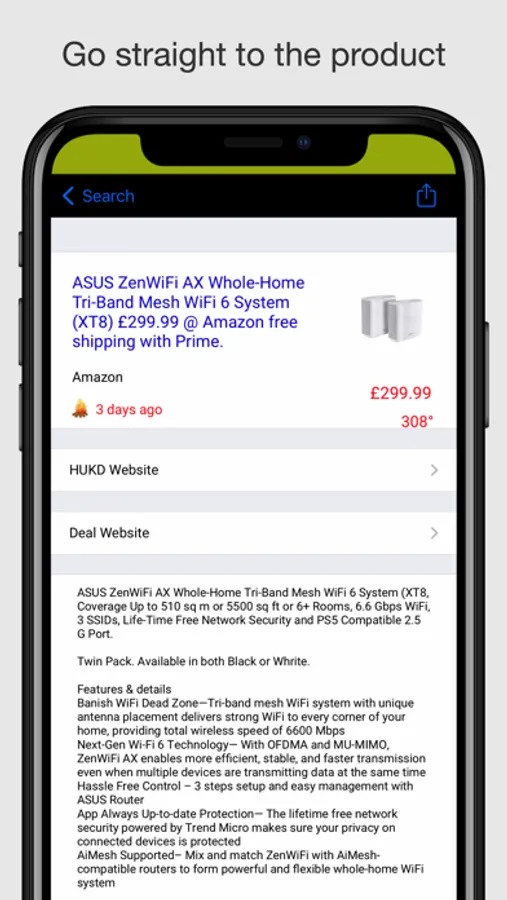 • Share the hottest deals via Facebook, Twitter, Whatsapp, email or text message.