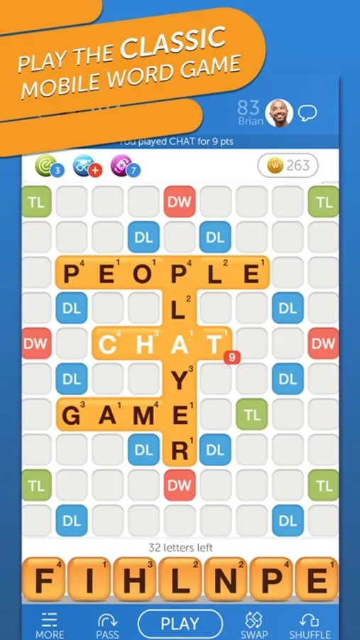 Come enjoy The Original Word Play! Grab your mobile device and prove you have what it takes to best your friends and family in this addictive multiplayer game. Whether you need to relax after a long day, or are looking to train your brain, Words With Friends Classic is perfect for you! Make sure to keep your mind sharp as you choose the perfect move on the board, as one word can be the difference between victory and defeat!