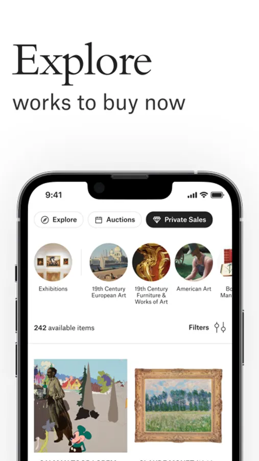 The world's leading art business at your fingertips. With the Christie's app, you can browse and bid on extraordinary art in over 60 categories, get up close with auction highlights, and manage your My Christie's account.
