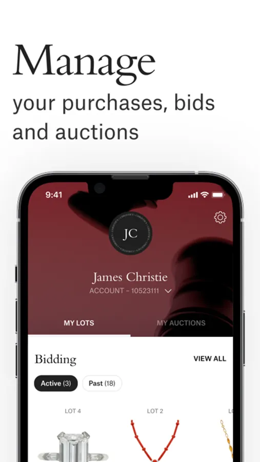 • MANAGE your My Christie's account and keep track of all of your purchases, bids, and registered auctions