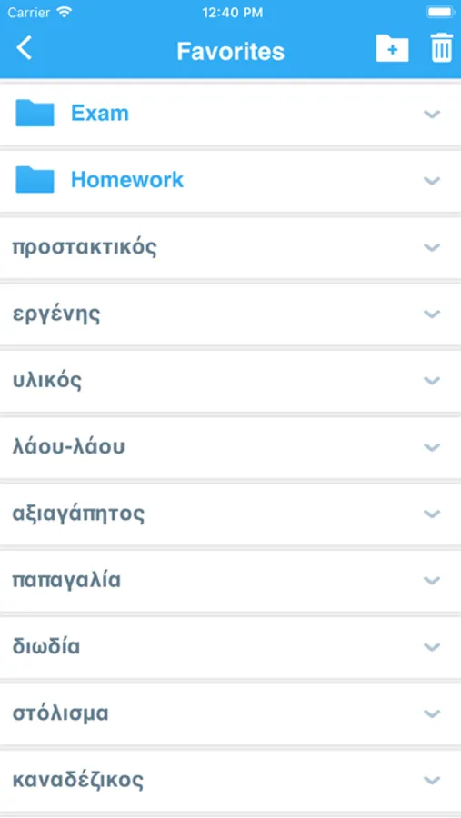 • ‘Favorites’ that allow you to create custom folders with lists of words.