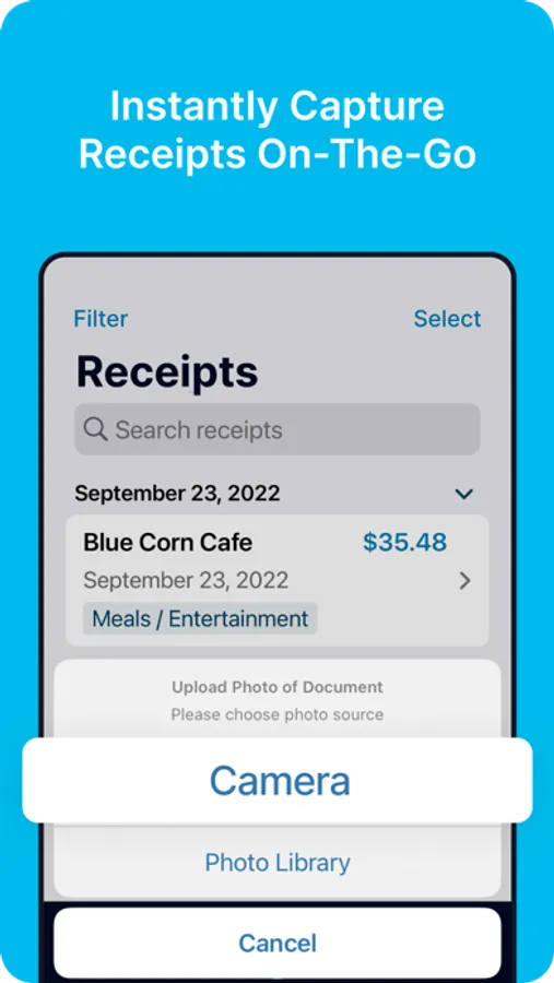 Track and scan expense receipts, mileage, and business cards—all in one place.