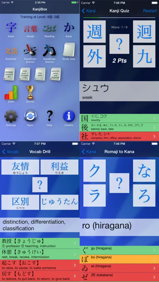 • Online scoreboards and GameCenter achievements: compete globally against all KanjiBox users!