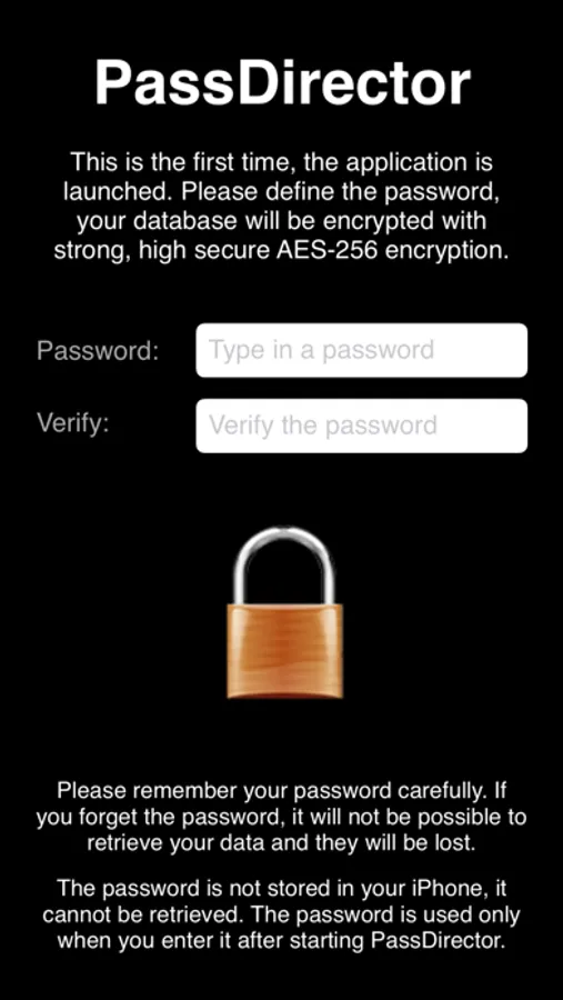 PassDirector uses strong, high secure AES-256 encryption. All cryptographic operations are performed using standard, system-provided iOS libraries.
