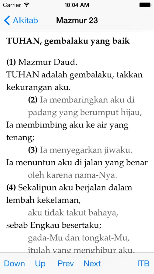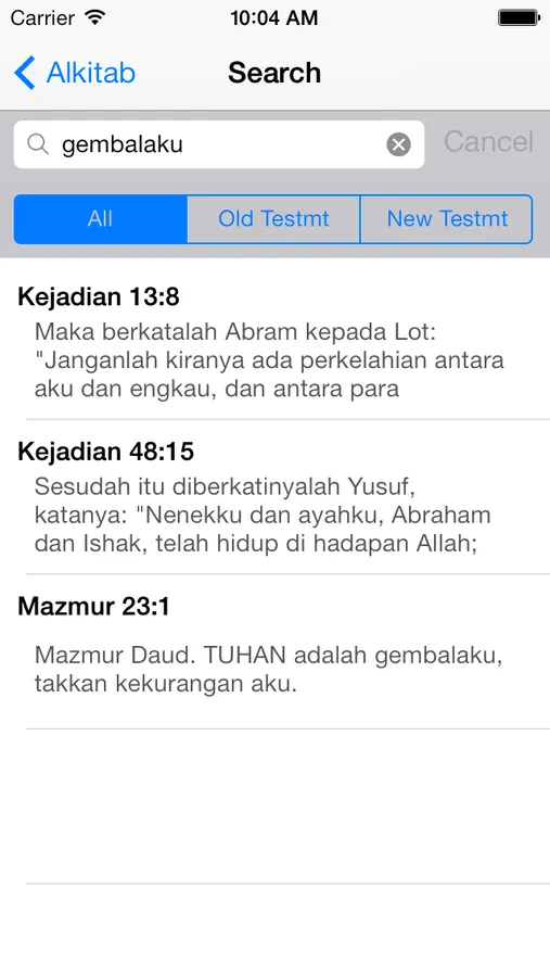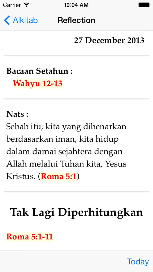 An Indonesian Bible (Alkitab Indonesia), complemented with an English KJV Bible. This is the iPhone version, please search for the iPad version if you're using an iPad. Features include search, bookmarks, annotations and history. Completely free and I hope this would be a blessing for all :)