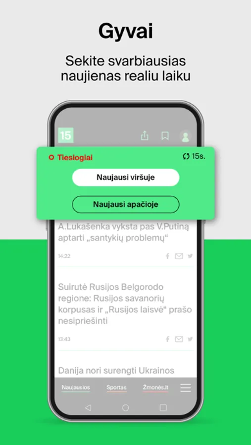- Pirmieji gausite svarbiausias naujienas realiu laiku;