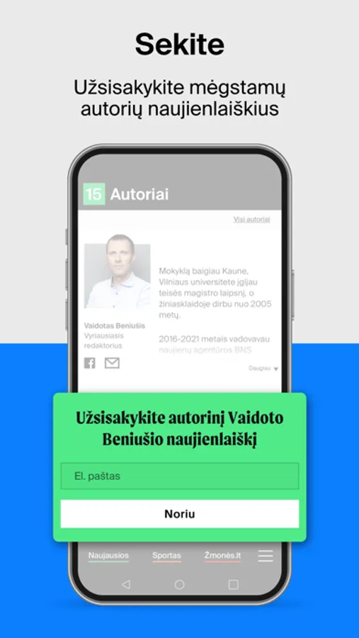 - Užsisakysite mėgstamų autorių ir temų naujienlaiškius;