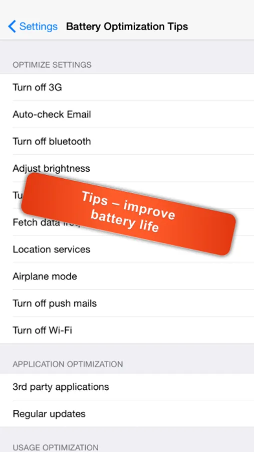 To help you saving your battery power, iBattery Pro also comes with a set of battery optimization tips and a maintenance feature.