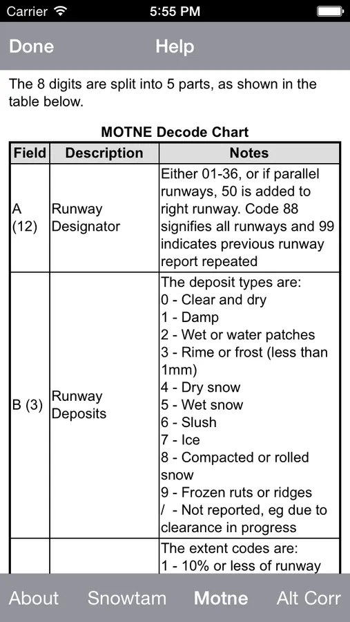Runway condition MOTNE codes, which are provided with METARs, can quickly be decoded with an intuitive spin dial interface, ensuring that invalid codes cannot be entered.