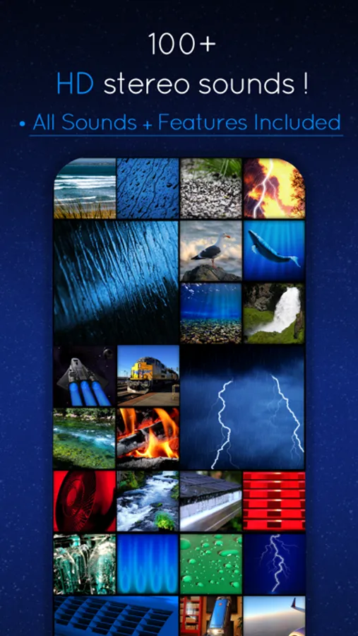 Our huge assortment of exclusive Sleep Machine ® sounds collection has been mastered to achieve the ultimate sleep & relaxation experience. All sounds are included ! Does not require any additional downloads ! No " In App Purchase " or " Subscription " required !