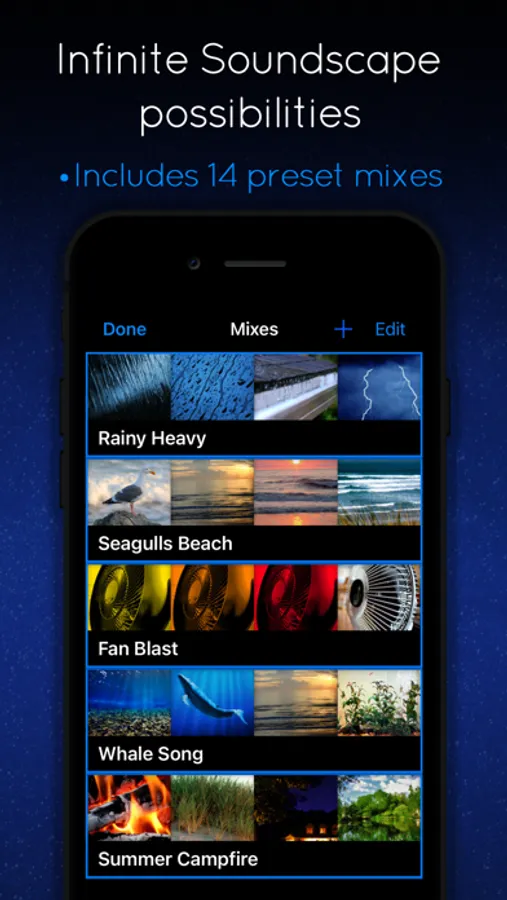 Easily Combine your choice of professionally recorded sounds with adjustable Volume, Balance, and Pitch to customize your personal relaxation environment.