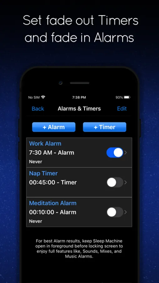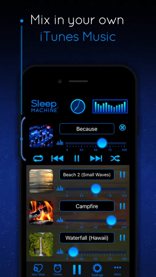 • Background audio playback support. Listen to Sleep Machine mixes when using other apps.