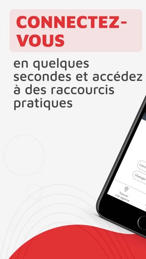 • Accéder à des raccourcis pratiques dès l’écran de connexion : pour trouver une agence, effectuer des paiements depuis votre mobile et accéder aux contacts utiles