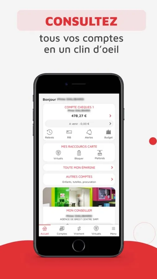 • Consulter le solde de vos comptes, de votre épargne, l’encours de vos cartes de crédit à débit différé et de vos crédits