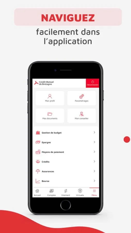 Le Crédit Mutuel de Bretagne vous propose d’enregistrer votre mobile comme « terminal de confiance ». Cet enregistrement vous permettra d’augmenter le niveau de sécurité de votre application. Une fois votre mobile enregistré, connectez-vous simplement à l’application grâce à votre empreinte digitale (2) ou FaceID (si votre mobile est compatible et enregistré comme « terminal de confiance ») ou à un code à 5 chiffres que vous avez choisi. Ainsi, vous bénéficiez d’un supplément de services de banque à distance.