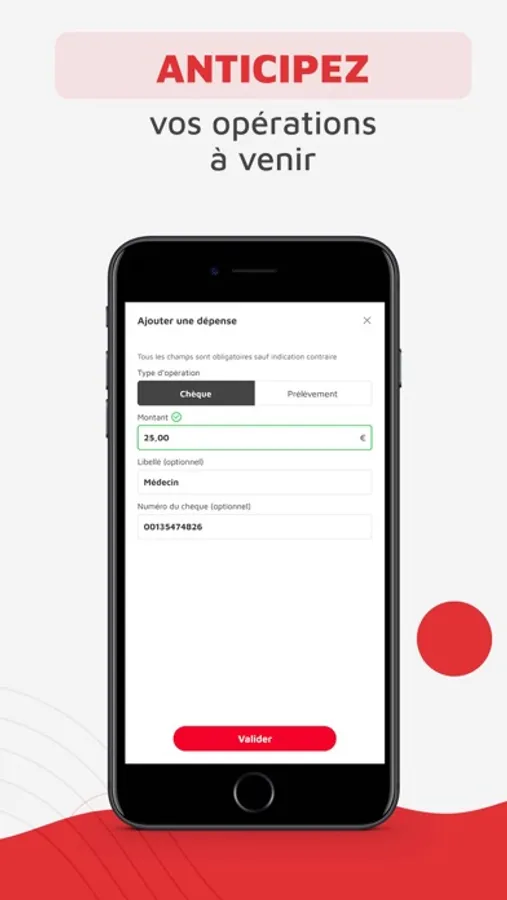 • Visualiser vos dernières opérations en temps réel, vos opérations à venir, ainsi que le montant de votre autorisation de découvert